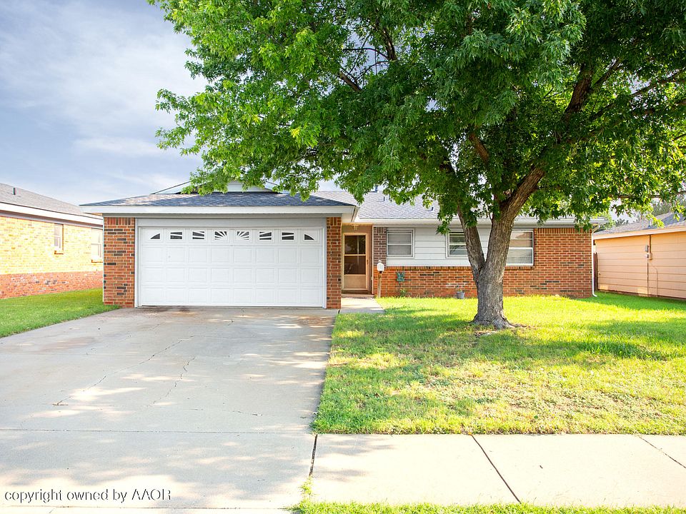 a 3 bedroom 2 bathroom 2 car attached garage home with a cute covered patio area and fireplace located in Southlawn South!Front facing garage leads in to kitchen. The dining area is located looking out towards the covered patio and adjacent to the stone fireplace in the living room.Updates includeNew pipes from the back of the house to the alley way 2018new sink and pipes under sink 2020new dishwasher 2017new roof 2017-per sellernew fence 2019