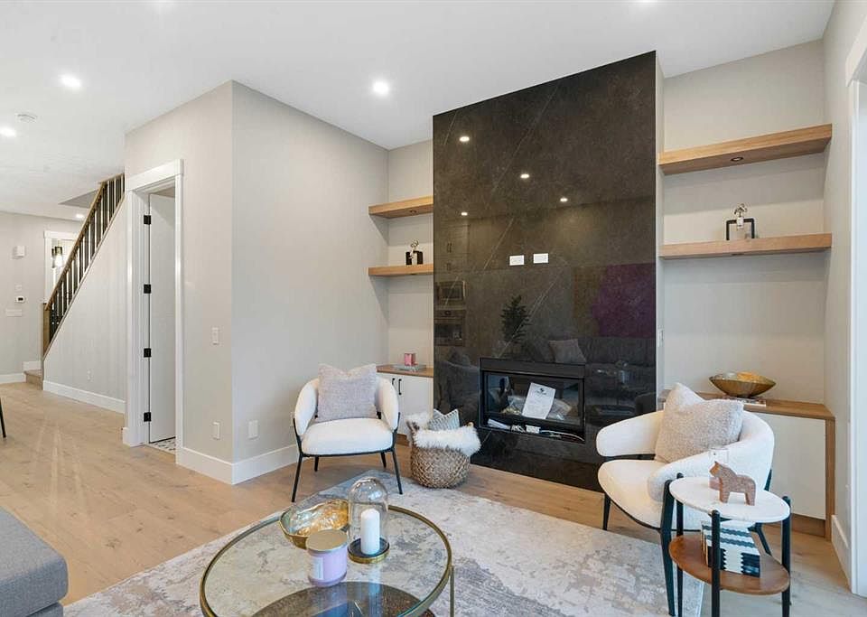 Experience modern luxury in this beautifully crafted home, perfectly designed for the discerning buyer. Spanning over 2,800 sq. ft., this residence combines sophisticated contemporary style with exceptional functionality, seamlessly blending spacious living and stunning outdoor spaces. Step inside to gleaming hardwood floors that unify the expansive open-concept main level. The chef’s kitchen is a culinary masterpiece, featuring custom cabinetry, granite countertops, and premium stainless steel appliances—ideal for entertaining or everyday family gatherings. The adjoining family room offers a warm, inviting atmosphere to relax and unwind. The luxurious primary suite upstairs impresses with soaring vaulted ceilings, a large walk-in closet, and a spa-inspired 5-piece ensuite showcasing dual sinks, a freestanding soaking tub, and a glass-enclosed shower. Two additional bedrooms, a stylish 4-piece bathroom, and a convenient laundry area complete this level. The fully finished basement offers versatile space suited for various lifestyles, with an innovative option to create a legal basement suite by opening a partition wall—perfect for generating rental income or accommodating multi-generational living. Alternatively, the space can be customized into a spacious, open-plan area by removing drywall and adding a railing, providing flexibility to suit your needs. The basement features a generous bedroom, a fully equipped kitchen, a cozy living and dining area, and a sleek 4-piece bathroom.