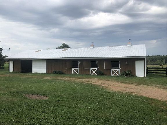 3 bedroom county home on 5.236 acres, 30x80 horse stable with concrete floors, power, water and matted stalls, 30x80 1/2 hay loft building, 24x48 concrete floor chicken coop with electric. Plenty of space for a Hobby Farm. Yard also has apple trees, grape vines and garden area.