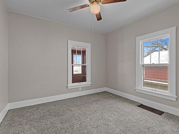 Adorable Bungalow with 3 main floor bedrooms for sale in Rock Island across from Historic Hauberg Estates park! Home features include - enclosed front porch, original hardwood flooring through living room, dining room, & 1 bedroom & Main level laundry in the 3rd bedroom. The front bedroom has brand new carpet and there is new paint throughout the home. Many updates and improvements in the last 10 years, including: kitchen with large island and new appliances, roof & siding, furnace & AC. Exterior features: fenced in back yard with concrete patio and fire pit, & a large 2.5 car garage with double doors for convenient ally parking!