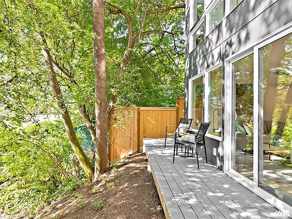 NW contemporary perched above Montlake park. Open kitchen with stainless steel appliances and quartz countertops. Spacious living and dining room leads to outside deck. Master bedroom with floor to ceiling windows and vaulted ceilings. Steps to Arboretum. Located in quiet street end setting, accessible from 19th and Calhoun. Walking distance to the University of Washington and light rail. Easy freeway access. Steps to Montlake Playfield with tennis courts, grassy fields, and lake access.