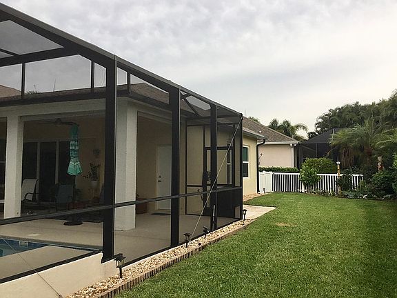 All newly landscaped front/back/side yards including upgraded sprinkler system piping and heads, new (2018) custom designed screened heated salt-system pool with oversized baja shelf and 6-person raised spa in 2018, new paverstone oversized front patio with kneewall, side/backyard paver patios, and upgraded covered patio to match pool deck. Garage and all exterior lighting upgraded. Wired and installed new outdoor fans and additional lighting. New roof in 2018, new triple sliding doors, and new windows (impact/hurricane grade (2019); all house exterior Benjamin-Moore professionally painted in 2018. Interior upgrades 2021 include new kitchen and laundry room cabinetry, counters, tile floors, all new upgraded black stainless appliances; plumbing upgrades kitchen and bathrooms for water, appliances and fixtures upgrades, all 3 bathrooms new (2021) cabinetry sinks, counters, newly painted throughout. Installed entire house tankless water systems with on-demand hot water in master bath vanities; new light fixtures and custom window treatments, new interior frosted glass doors, customized built-in entertainment center, added R38 attic insulation, 2021 separate AC/heater in garage, smart lighting, security, thermostat and linked room sensors. Previous owners replaced carpets in master, living/dining and family room with quality bamboo planking; also upgraded the AC unit.