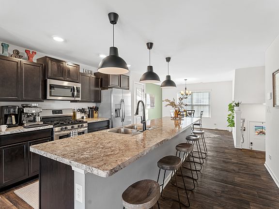 Modern finishesOpen-concept main levelStylish kitchenDining areaSecond-floor laundryPrivate en suite baths
