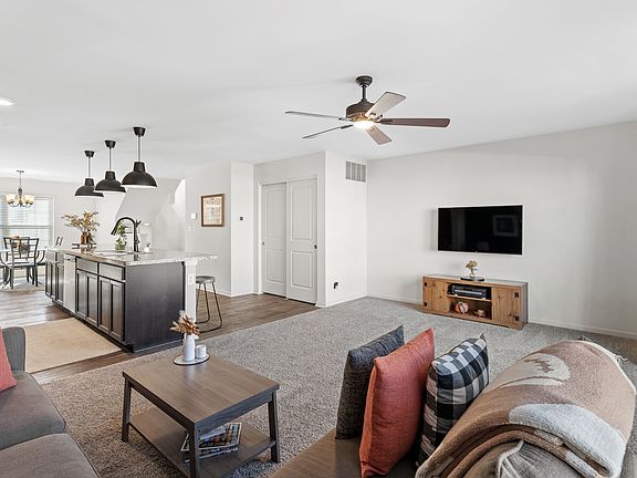 Bright, modern, and move-in ready! This 2 bed, 2.1 bath townhouse features an open-concept main level with a stylish kitchen, dining area, and family room filled with natural light from large windows. Upstairs, both bedrooms offer private en suite baths and convenient second-floor laundry. The lower level is perfect for a home office or flex space. Enjoy a 2-car garage, modern finishes, and a prime location close to schools, dining, shopping, and highway access. Sleek, spacious, and full of light-welcome home!