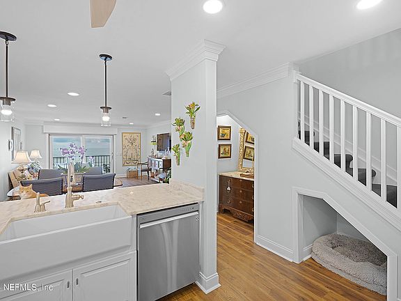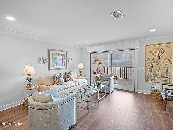 Experience luxurious oceanfront living in this fully renovated 3-bedroom, 2-floor penthouse condo, complete with an office or flex space. Located in the exclusive La Playa, this home combines modern sophistication with timeless design, offering the feel of a private residence rather than a typical condo. From its three balconies, you'll enjoy breathtaking views—one facing west for stunning sunsets and two facing east for captivating sunrises. Meticulously renovated in 2021, the condo boasts all-new LED lighting, luxury vinyl plank flooring, and spa-inspired bathrooms featuring custom tile, a walk-in shower, a soaking tub, LED-lit mirrors, and ample storage. The kitchen is a chef's dream, showcasing marble countertops and backsplash, pendant lighting, custom cabinetry, and premium appliances. Additional upgrades include solid wood interior doors, crown molding, a custom stair railing, and a charming nook beneath the staircase that adds functionality and storage. Electric blackout shades and plantation shutters provide both convenience and style. The boutique building includes a private pool and is conveniently located near premier dining and shopping, while remaining free from public parking areas, ensuring a serene and exclusive beach experience. Just 2 miles from the renowned Ponte Vedra Inn and Club, the location offers the perfect blend of convenience and tranquility. As an added bonus, the condo includes a private garage valued at over $75,000, offering secure parking and extra storage. Don't miss the opportunity to own this exquisite oceanfront property that combines luxury, comfort, and functionalityit's more than a condo; it's your dream home by the sea.