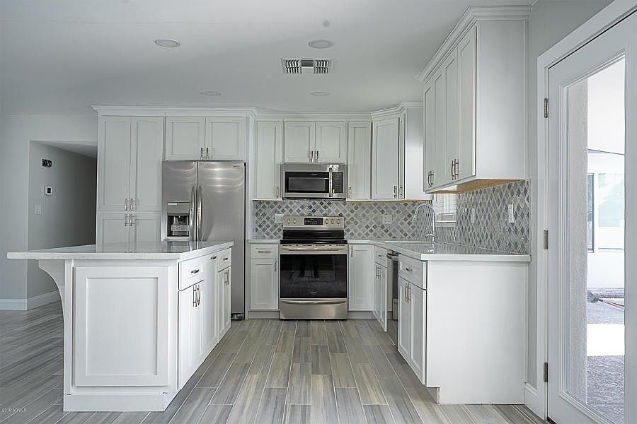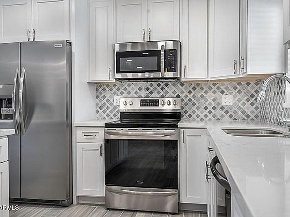 Fully remodeled Tempe home. Conveniently located off the 101, this home offers all the upgrades you could ask for. The kitchen has stainless steel appliances, white soft-close cabinets, and sparkling quartz countertops. New fridge and new carpet in 2 of the bedrooms (2023); new auto pool filler (2022); new HVAC unit (2019). The Primary bedroom is HUGE with it's own access to the backyard and POOL. The flooring is plank tile (except for bedrooms). *Roof will be replaced by Seller when weather allows.