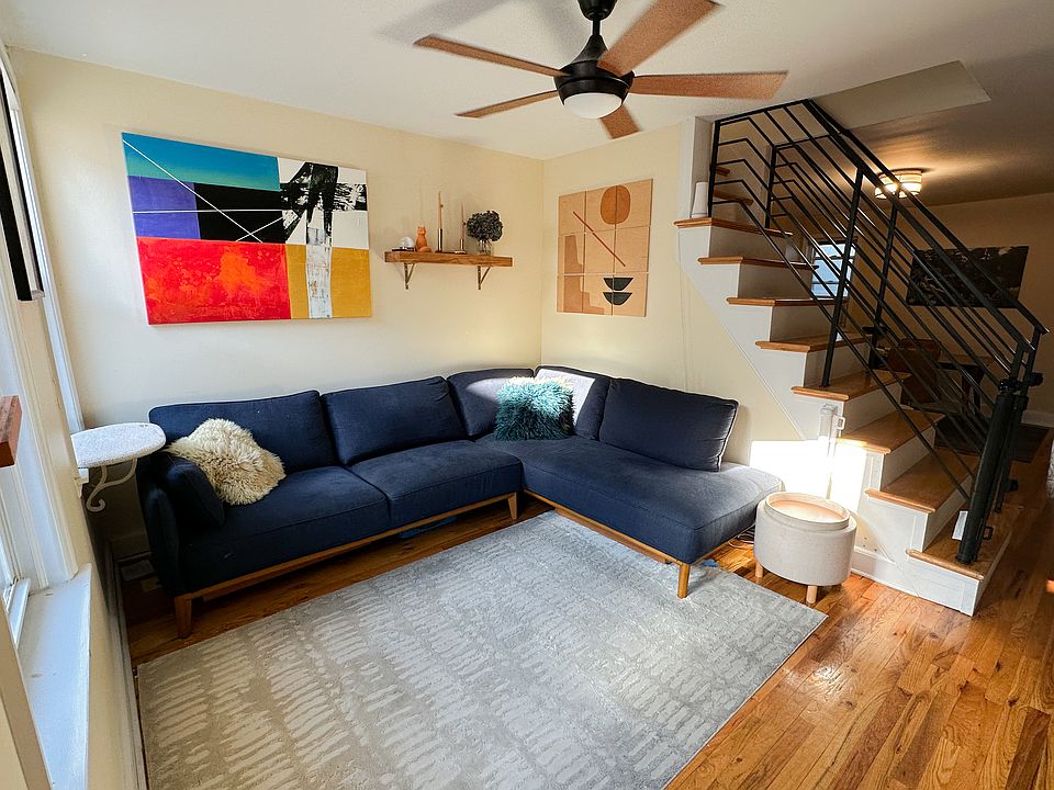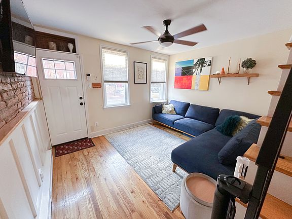 Welcome to your new home on tree-lined, friendly Firth Street. Step inside to find beautiful oak hardwood floors throughout, exposed brick accented with elegant wainscoting, and large windows that fill the home with warm afternoon sunlight. The space blends timeless character with modern design, highlighted by thoughtful mid-century modern touches. A spacious dining room flows seamlessly into the updated galley kitchen, featuring brand-new GE appliances and a sleek, functional layout. From there, step outside into your private backyard oasis a rare city retreat with bluestone pavers, lush grass, and plenty of space to entertain, relax, or host a summer cookout. Upstairs, you'll find a large shared bathroom with French doors, gold accents, wainscoting, and abundant storage. The second-floor primary bedroom offers two large windows and a walk-in closet, while the third floor includes two additional full-sized bedrooms. You'll love the location just five minutes from I-95 and steps away from popular Fishtown favorites like Meetinghouse, Cook and Shaker, ReAnimator Coffee, Loco Pez, Cedar Point, St. Oners, Fiore, Lost Bar, Philadelphia Brewing Company and so much more. Parking is easy, with ample street parking available (often right on the block). The basement offers plenty of storage and includes a free washer and dryer for your convenience.