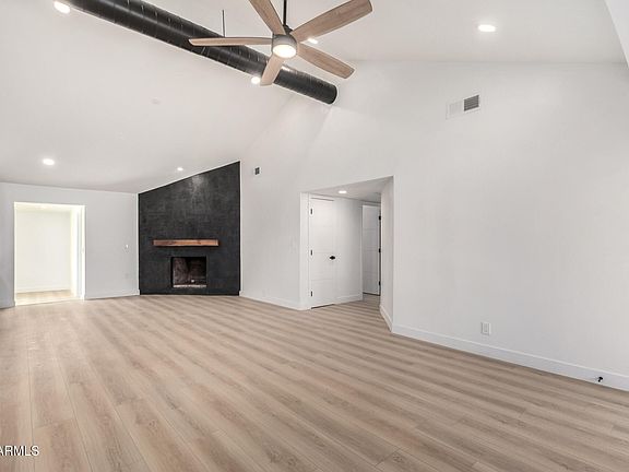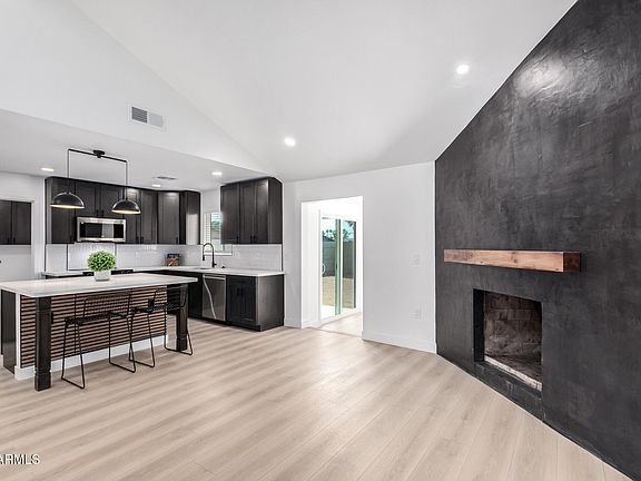 Don't miss your chance to own this gorgeous 4 bed/2 bath corner lot home. Fall in love w/ the spacious open floorplan showcasing wood lamimate flooring, vaulted ceilings,modern exposed ductwork, recessed lighting, a fireplace to ensure cozy evenings, and stylish neutral colors. The chef's delight's kitchen offers shaker cabinets, quartz countertops, gorgeous backsplash and a HUGE walk-in pantry.The main bedroom hosts custom design wall, walk in closet & an ensuite w/ dual sinks & impressive tiled shower. Secondary bedrooms are light and bright. All interior doors custom designed. This isn't your standard cookie cutter home. Stand apart from the average. Step outside to a large backyard awaiting your dream oasis. Additional storage sheds. Close to Downtown Gilbert!
