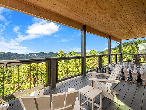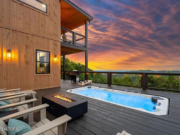 BRAND NEW FULLY FURNISHED LUXURY 4 BEDROOM CABIN IN THE SMOKY MOUNTAINS WITH BREATHTAKING VIEWS (CO for 12 occupants). Prepare to be in awe of the unobstructed mountain views, the 9 person swim spa, peaceful setting, and the absolute elegance this property exudes! This stunning cabin has been professionally designed and offers unparalleled luxury complete with higher end furnishings with 2 king size beds and 2 queen beds. The double deck on the back is the perfect spot to drink your morning coffee or soak in the swim spa and get lost in the views of the majestic Smoky Mountains! The main level features a spacious layout perfect for gathering, soaring tongue and groove ceilings, floor to ceiling tile electric fireplace in the heart of the space, a custom kitchen that comes fully stocked, primary suite with custom tile walk-in shower, laundry area, and half bath. Upstairs includes numerous windows to delight in the gorgeous views while playing in the game room with wet bar and living area with a second floor to ceiling tiled fireplace, three additional bedrooms, and two full baths with custom tile work. The loft offers huge windows with views so remarkable it looks like a painting! Located in a quiet area, this cabin is sure to be a guest favorite! Buyer and/or buyer's agent to verify details.