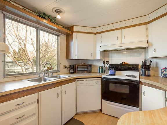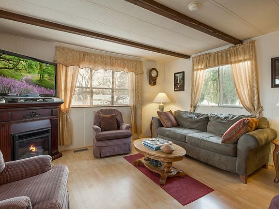 Well Maintained Manufactured home in the Valley. Light and bright with a large living room that opens up to the kitchen. Beautifully updated bathroom with double sinks. Covered sitting porch and great over sized garage/ shop area for all your projects or toys. Large fenced back yard! Rare find in East Valley.