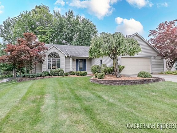 Welcome to the meticulously maintained home, that offers a perfect blend of comfort, style, and convenience. This 4 bed 3 bath ranch style home is nestled in a mature neighborhood that provides retreat while being just minutes away from vibrant downtown Grand Rapids. Complete with an open living room and gourmet kitchen, ideal for cooking and entertaining, this open floor plan features cathedral ceilings and firelit living room. The dining area flows into the sunroom, then opening to the large deck that overlooks the backyard that backs up to City Central Park, with walking paths, pickle ball courts and pond. Full home central vacuum system, new roof in 2012 along with new furnace and AC in 2018. The finished basement has an abundance of daylight windows allowing natural light as it offers additional living and entertaining space as well as two bedrooms and full bath.