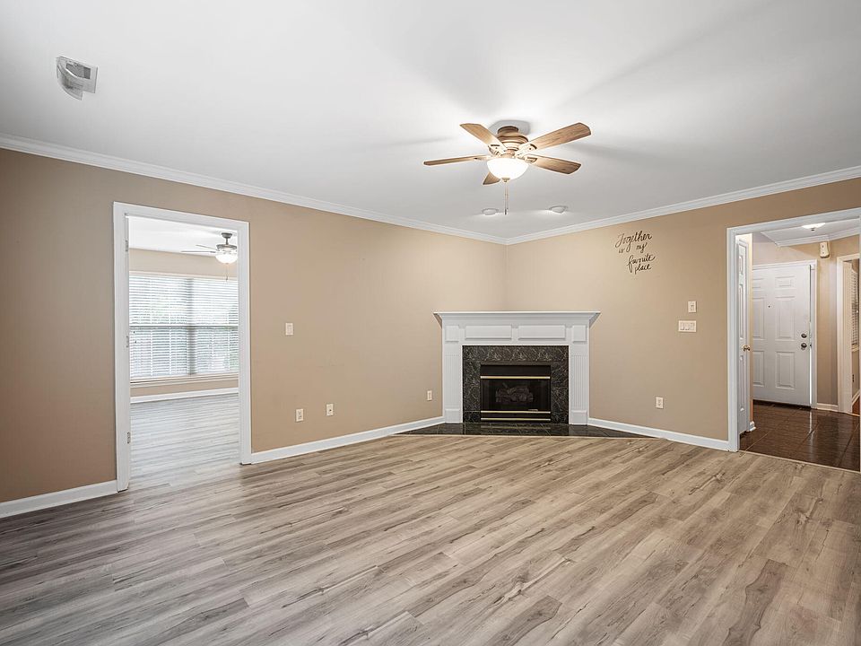 Welcome home! The main level features a spacious kitchen with granite countertops, generous cabinet space, and GE appliances, including refrigerator, stove, microwave, and dishwasher, all new in September 2024. The dining room and living room create an open, inviting space for entertaining. A main-level bedroom adds flexibility, and a conveniently located half bath serves guests. Durable LVP flooring (Aug 2022) with a lifetime warranty adds style and ease of care throughout the main level.