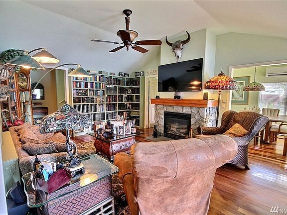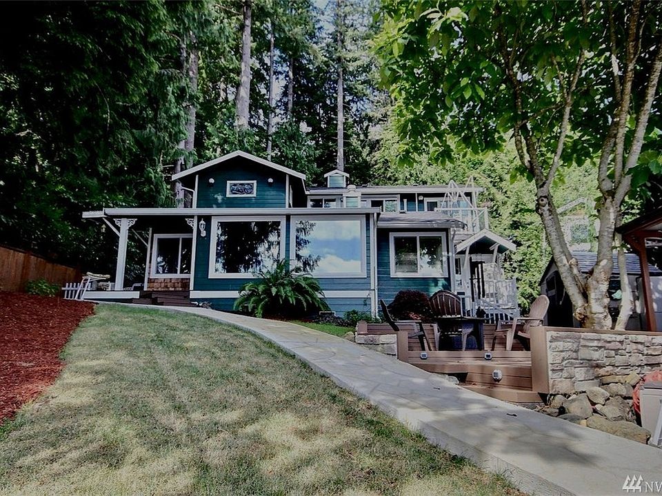 With gated drive & LAKE VIEWS from almost every room, this is the dream house & sanctuary on 50'+ lake front that you are looking for! Master includes, 2 walk-in closets, step-in bath tub & deck overlooking the lake. Enjoy extended living with outdoor kitchen & fireplace-just steps to your dock! Separate office/studio, 2 car garage + carport + lots of extra parking & storage. Don?t miss the ?Hobbit? house too! Complete w/boat house! Jenset Generator stays! Remodeled from the studs out in 2000!