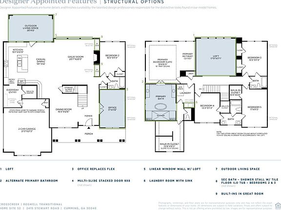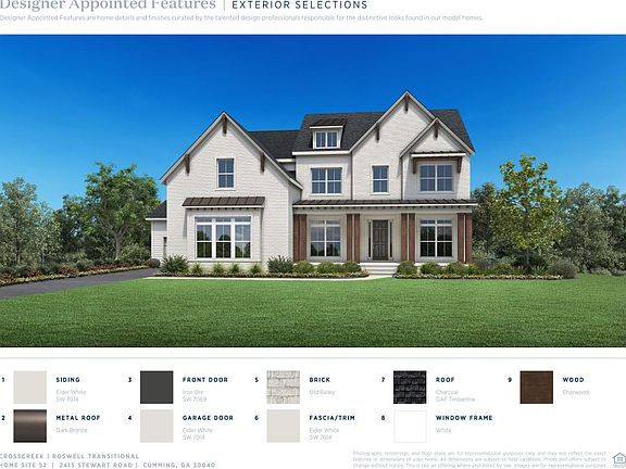 The open, elegant Roswell home design leaves a lasting impression with its distinctive features and effortless style. The Roswell's entry reveals a spacious flex room and stunning formal dining room, with views to the soaring two-story great room and desirable patio beyond. Enhanced by a large center island with breakfast bar, the well-designed kitchen features wraparound counter and cabinet space, and roomy walk-in pantry. The palatial primary bedroom suite is complemented by a relaxing retreat, gigantic walk-in closet, and king-size primary bath with dual vanities, large soaking tub, luxe shower with seat, and private water closet. Secondary bedrooms feature sizable closet space, one with private bath, two with shared bath with separate dual vanity area. Additional highlights include a versatile first floor bedroom with closet and shared hall bath, convenient everyday entry, centrally located laundry, and additional storage. Disclaimer: Photos are images only and should not be relied upon to confirm applicable features.