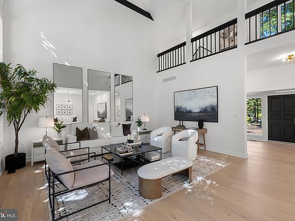 OPEN HOUSE Wednesday, October 15 @ 1-3pm, Set on 1.4 acres of serene, wooded landscape in the exclusive Velvet Valley community, this newly renovated contemporary 5-bedroom, 6 bathroom residence redefines modern luxury. A striking entryway opens to double-height ceilings and new white oak flooring, creating an immediate sense of space and light. Expansive picture windows and skylights fill the interior with natural illumination. The den or dining room features a wood-burning fireplace, spiral staircase, and built in cabinetry with a beverage fridge, making this warm space inviting for everyday living as well as for entertaining. The living room serves as the heart of the home—an expansive, light-filled space that reflects the home’s contemporary elegance. Soaring ceilings and a wall of picture windows create a stunning sense of openness and offers natural light throughout the day. Designed for versatility and comfort, the room offers ample space for multiple seating and living areas. Glass doors open directly to the outdoor deck and pool, blending indoor and outdoor living and making the most the home’s serene natural surroundings. The custom-designed kitchen features a full suite of Viking appliances—a six-burner electric cooktop, wall oven, refrigerator, and microwave—paired with quartz countertops and MasterBrand cabinetry. Recessed lighting enhances the sophisticated ambiance that flows seamlessly through every room. The primary suite is a private sanctuary, complete with vaulted ceilings, a private balcony, and a large walk-in closet with a built-in jewelry safe. The spa-inspired ensuite bath features double vanities, a luxurious soaking tub, and a grand shower with multiple showerheads, creating an atmosphere of indulgent relaxation. On the upper level a second ensuite bedroom, three more additional bedrooms, and a third full bath provide exceptional comfort for family and guests. On the lower level, more than 1,000 square feet of finished living space with extra-tall ceilings, a half bath, and walk-out access invite endless possibilities—ideal for a lounge, home theater, art studio, or fitness area. The adjacent unfinished area allows for further customization by new owners. The exterior is equally impressive with a circular driveway leading to a four-car attached garage. A private backyard oasis features a heated pool, large deck, pond, and patio—a perfect setting for relaxed outdoor living. Located minutes from Owings Mills, Timonium, and Hunt Valley, with convenient access to shopping, schools, parks, 83 and 695, this exceptional property offers the ultimate in privacy, design, and convenience. Experience luxury living in one of Baltimore County’s most coveted enclaves.