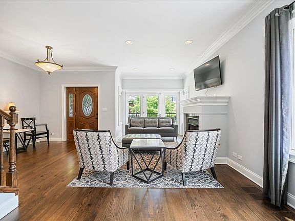 Exceptional value in North Center's highly rated Coonley School District - this updated 5-bedroom, 4.1-bath single-family residence spans four beautifully finished levels, blending timeless craftsmanship with modern luxury. The sun-filled main level welcomes you with hardwood floors, oversized windows, and a thoughtful flow from formal living and dining to a chef's kitchen designed for entertaining. Appointed with quartz countertops, a dramatic center island, and custom cabinetry, the kitchen is paired with a spacious mudroom/laundry ideally located for today's active household. The second level showcases a luxurious primary suite with a spa-like bath featuring dual vanity and oversized walk-in shower, a generous walk-in closet, and direct access to a serene sun porch and private deck - a perfect blend of comfort and sophistication. Two additional bedrooms, each generously sized with large closets and abundant natural light, share a beautifully finished full bath, creating inviting and functional spaces for family or guests. The third level suite is a showstopper - perfect as a private guest retreat, teen lounge, or dedicated home office. With its own entrance, sunlit deck, and spa bath with Jacuzzi soaking tub, this level offers both privacy and indulgence, creating a true sanctuary for work or relaxation. The finished lower level expands your living space with a sprawling family room, an additional bedroom, full bath, and a second kitchen - ideal for multigenerational living, au pair or nanny quarters, or extended-stay guests. Outdoor living is equally impressive, with four distinct spaces: a deck off the main level, two additional private decks on the upper floors, as well as a charming balcony off a front-facing second-floor bedroom, and a rooftop deck above the 2-car garage - all perfect for summer gatherings or quiet relaxation. Set on a quiet, tree-lined street, this home offers a rare combination of space, style, and location - just steps to Welles Park, Horner Park, the Brown Line, and the shops and dining of Lincoln Square and Roscoe Village, with acclaimed schools including Coonley Elementary, Lane Tech, and DePaul College Prep all nearby. This is North Center living at its finest - a rare opportunity in the Coonley School District.