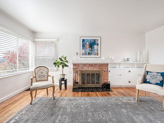Discover the charm of this 1940 3 bedroom, 1 bath home with stunning views, perfectly situated just blocks from Audubon Park. Located within walking distance of schools, restaurants, and city amenities, this home offers a unique blend of character and convenience. Upon entering, you'll be greeted by original hardwood floors and oversized windows flooding the living room with natural light. The spacious living room includes gorgeous views, a wood-burning fireplace, built ins and an adjacent dining space just off the kitchen. The main level primary bedroom features a walk in closet and is steps from the recently updated bathroom with a walk-in shower. The partially finished basement is where you'll discover a third bedroom with egress windows, laundry area, the attached 2 car garage, workshop, and extra storage space. Also featuring a spacious, fenced backyard, recently painted exterior and less than 10 yr old roof. A bonus is the space in the back for a potential ADU with alley access.