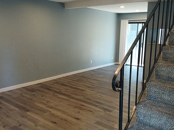 Most recently remodeled two bedroom apartment.That is actually like a condo.You have two bedrooms upstairs with a bathroom. In downstairs, hardwood In the living room tiles In a bathroom Carpeting in the bedrooms with a fireplace In living room dining area kitchen and a patio Front back gated with the keypad Close to downtown shopping center and restaurants and freeways The owner pays for water and garbage