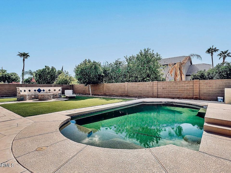 Over $120K in Upgrades. Pool, fully Owned Solar panels, Water RO plus filtration. Located in the desirable Brittany Heights community and perfectly situated on a 10,010 sq ft lot that uses every bit wisely. Five bedrooms Three Bath, plus a den/nursery off the primary that can be a 6th bedroom. As you enter, be greeted by vaulted ceilings, that flow seamlessly into the formal dining room. Plantation shutters throughout, windows allow plenty of natural light. The kitchen has eat in dining, quartz counters, that open to the Great room. Outside is paradise, built in BBQ, easy pool, fake grass, plumbed gas firepit, Solar panels (no lease). Upstairs see your brand new primary bathroom. Great neighbors, low HOA, owned Solar, 3 garage bays plus 4 driveway, and RV gate. Lot is 77 ft by 130 ft.