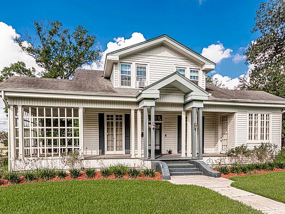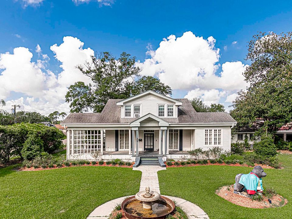 At a historic 100 years old, this charming home spans a huge corner lot near Downtown Plaquemine with a beautiful back yard, patio, covered parking, ceiling heights up to 20 ft., large rooms with hard wood floors, den with wet bar, gas log fire place, and gorgeous front porch. This home is built strong. From notes left by the previous owner, interior walls are tongue & groove willow and built using locally milled lumber from Iberville Parish. The master bath features heated floors. Exterior storage includes a shed and two-story building with covered parking, plus lots of closets, built-ins and walk-in attic space. You can't miss this home's landmark and long time resident of the property, the gorilla in the front yard, adorned in stellar outfits changed to match the current holiday season. Don't miss out on your turn to own this unique piece of history!