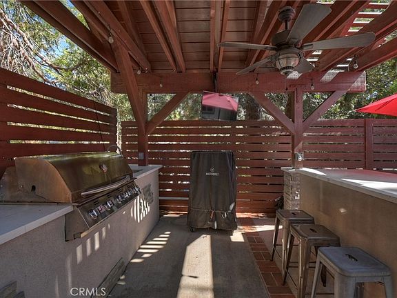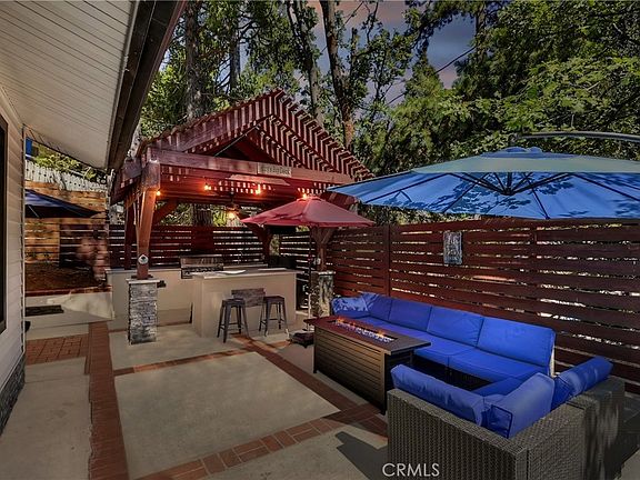 Spacious tastefully remodeled San Moritz area home on a flat fenced lot with a prime location just around the corner from lovely Lake Gregory! This stunning split level home has it all, an inviting open floorplan with vaulted ceilings and dramatic rock fireplace featuring a cozy wood burning stove. Large primary suite with beautiful en suite luxury bathroom. Two large bedrooms upstairs with remodeled full bath. Main level has a very large bedroom currently in use as a combination office and den, full remodeled bath, laundry room/area, livingroom/kichen,dining plus a large bonus storage/sun room. Home is ideal for entertaining with a lovely outdoor patio space with covered state of the art BBQ/Bar with plenty of seating. There is also a fenced yard with artificial grass and picnic bench seating area that is pet and child friendly. Huge number of recent updates/upgrades including new oversized high efficiency whole house A/C, whole house natural gas Generator, Dual Pane Windows, Vinyl Siding, Newer roof, recent full interior remodel, New Secure Gated Front Entry and much more! Best of all, this home is ideally located just around the corner from Lake Gregory, Goodwins Supermarket, restaurants, entertainment, miles of trails and more. There are even Peek-a-boo Lakeviews from one of the bedrooms and a couple areas on the property. Home has previously been used as a successful/profitable AirBnB/Vacation Rental and could be again! Don't miss this amazing opportunity...make your offer today!