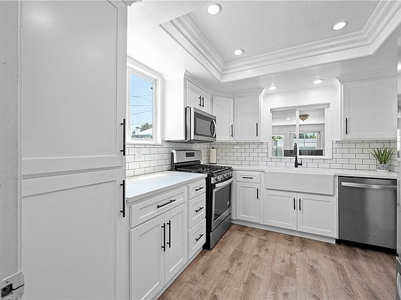 Presenting an opportunity to own a home in this Beautiful Lake Forest Neighborhood. Welcome to 24151 Fordview St., Lake Forest, Ca. Step into a world of comfort with this stunning 4-bedroom, 2-bathroom single-level home. Nestled on a sprawling 8,190 sq ft lot with low-maintenance turf in both the front and backyard, this property exudes curb appeal from the moment you arrive. When you approach the double-door entrance, the home welcomes you with a blend of modern upgrades and spacious living. The soaring vaulted ceilings, elegant vinyl flooring, and the warmth of the updated fireplace surround create an inviting atmosphere in the living room and dining room areas. Culinary adventures await in the beautifully remodeled kitchen featuring quartz countertops, shaker-style cabinets, a stylish backsplash, and stainless-steel appliances. It seamlessly flows into the family room, where endless memories await. The extension off the family room offers the perfect space for a game room, playroom, exercise room, or oversized office. Let your imagination decide what to make this space. Per the Sellers, this extension was added by previous owners. Sellers were told it was not permitted and not part of the home's 1,488 sq. ft. Step outside to a covered patio for alfresco dining and entertaining, leading to the immense backyard with turf for low-maintenance care. Envision hosting summer barbecues, adding a sparkling pool, or designing your outdoor oasis—the possibilities are endless!