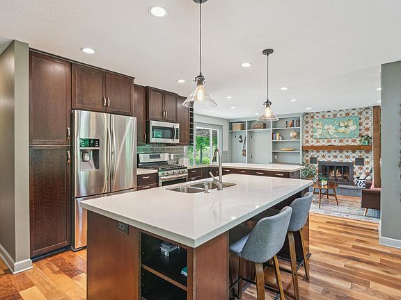 Nestled on 10 peaceful acres, this charming, beautifully updated 4-bedroom, 2.5-bathroom walkout rambler in Linwood Township offers the perfect blend of modern elegance and serene country living. Step inside to discover tasteful updates throughout, featuring rich walnut flooring across the main level, recycled glass surfaces and custom birch cabinetry that elevate the space. Three bedrooms and one and a half bathrooms on the main floor. Off of the kitchen, there is a cozy sitting room with a wood burning fireplace, just steps from the back deck.