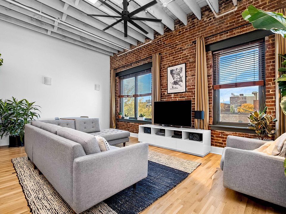 Discover the pinnacle of urban sophistication in this top-floor condo at Johnston Lofts, nestled in the bustling heart of downtown. This exquisite 2 bedroom, 1 bath unit presents panoramic city views, creating a unique urban sanctuary. The condo boasts recently refinished hardwood floors (2021) and elegant gallery lighting, adding a refined ambiance. The open kitchen, renovated in 2021, is a dream for culinary enthusiasts. Comfort is paramount with a new HVAC system installed in 2020. The rooftop deck is a standout feature, perfect for enjoying 4th of July fireworks, barbecues, and social gatherings. Adding to this luxurious lifestyle, the building offers secure gated parking and controlled access, ensuring peace of mind. Located within walking distance of top dining, bars, galleries, Railroad Park, and Regions Field, this condo is an ideal choice for those seeking a blend of convenience and upscale city living.
