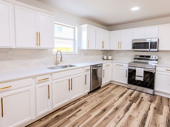 This beautifully updated home features elegant gold hardware and fixtures throughout, commercial-grade scratch-resistant flooring, new tile bathrooms, custom glass shower doors, and sleek white countertops with a large island and pendant lighting. Enjoy two primary suites (one upstairs and one downstairs), new windows, recessed lighting, and an epoxy-coated garage floor. Outside offers an extended covered patio, freshly stained fence, and added concrete for extra parking. This home truly combines modern elegance with functionality — ready for its new owners to move in and fall in love!