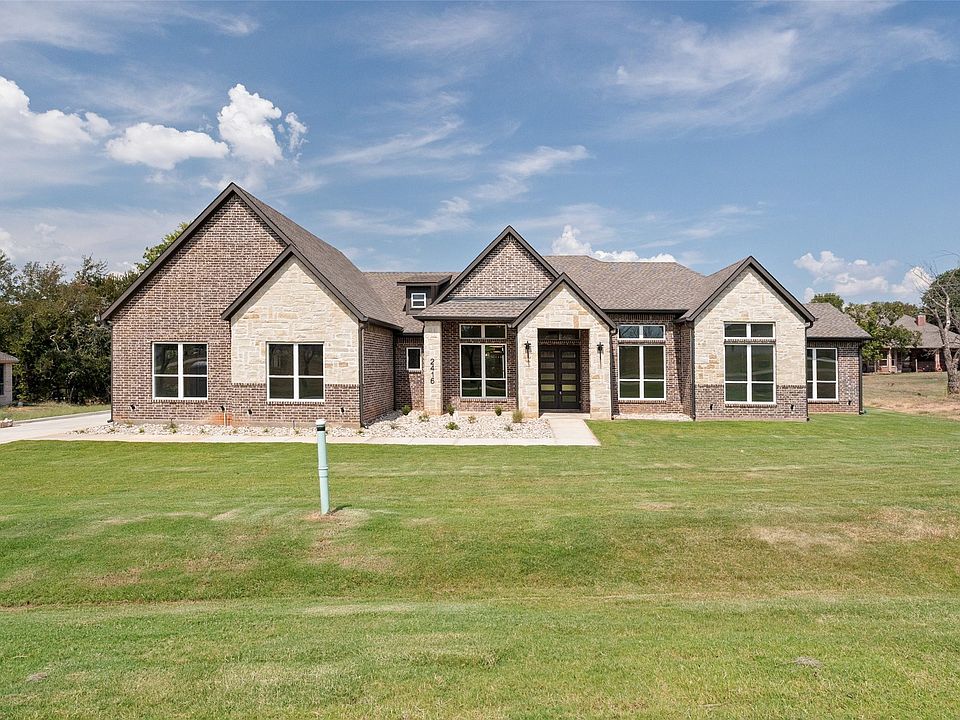 Indulge in spa-like bathrooms with LED mirrors, LED-lit cabinets, and high-end modern chandeliers and lighting throughout. The primary suite offers direct access to a thoughtfully designed laundry room with sink, folding station, and dual entries. Built to last and conserve, the home includes: • 40 slab piers for solid foundation • Two tankless water heaters • Fully encapsulated spray foam insulation, including garage • Low-E windows for abundant natural light and energy efficiency • Full brick and stone exterior. Outdoors, enjoy your 18x16 covered patio, sprinkler system, lush sod, and ornamental landscaping, all supported by cost-efficient Orchard Water. The oversized garage provides ample storage and workspace. This is more than a home—it’s a lifestyle. Come experience luxury redefined in one of the most sought-after communities in Texas. Schedule your private showing today!