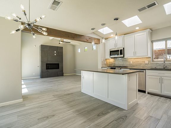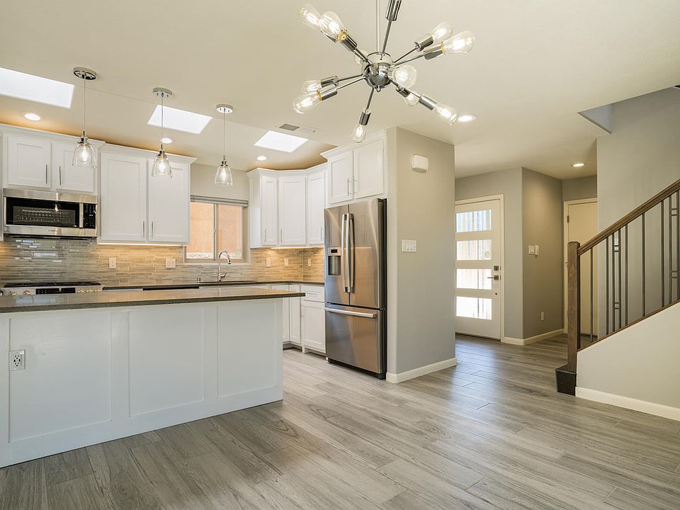 PRICE REDUCED TO SELL!! Old Town New Construction Contemporary!! Luxury home walking distance to Old Town Plaza. One of a kind home; chefs kitchen; Bosch appliances incl. fridge; quartz counter tops w/exceptional tile back splash & custom white cabinets . Porcelain wood grained tile flooring. Designer baths w/quartz & custom tile accents. Custom light fixtures throughout make this 2 bedroom, 3 bath home, w/2 car epoxy garage floor an amazing opportunity. Lots of storage & thoughtful design . Hi-end 2 stage energy efficient heating & AC; TPO & Metal Roof; one year complimentary alarm monitoring; Enjoy a summer beverage on oversized patio defined by architectural painted wood beams.