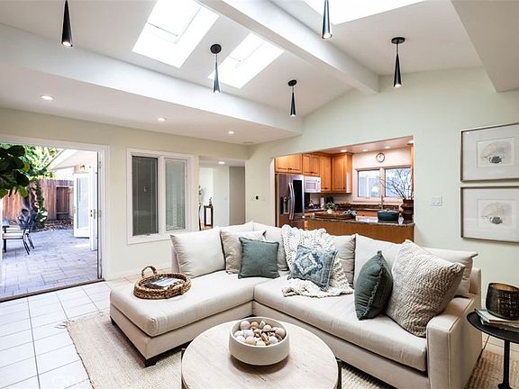 Welcome to this soulful single-level ranch home situated on a flat, over 10,000 square foot lot on one of the best streets in the highly coveted lower Lunada Bay neighborhood, just a block from the bluffs. Walk to the award-winning PV elementary, middle school and high school. Stroll to the bluffs, shops, concerts in the park, hiking trails, and more. This thoughtful, functional floor plan is versatile and appeals to many lifestyles. It exudes grace and light and includes a living room with crackling fireplace and built ins, dining room, kitchen, and separate laundry room. The home is flooded with natural light, skylights, and upgraded dual and triple paned Pella windows and French doors throughout. There are 3 good-sized bedrooms, 2 updated bathrooms, fresh paint and recessed LED lighting. This single-level home exudes warmth, and you'll discover a backyard where you can relax, entertain, and enjoy the shade of eucalyptus and mature fruit trees. There is a detached garage with ample built ins. The current backyard setting is lovely, or add a pool, pool house, pickleball court or ADU; the opportunities are endless. Don't miss the opportunity to enjoy PVE's A+ school system and experience coastal living at its finest. And be sure to enjoy the benefits joining the PV Beach and Athletic Club, PV Golf Course, PV Tennis and Pickleball, and a friendly and vibrant community.