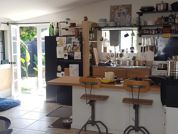 This is a charming attached back house with two outdoor decks and landscaped yard. Cozy open layout with fully equipped kitchen, separate bedroom and and bathroom. In a quiet neighborhood, but only a couple of blocks from the action. 10 min walk to Abbot Kinney, Venice Beach, the boardwalk and other major attractions and only 5 min walk to canals. Ideal for single tenant or couple. Includes bikes and surfboards. Washer / dryer on site. Prime Location! Very nice neighborhood and neighbors are very easy going. $2750 month.