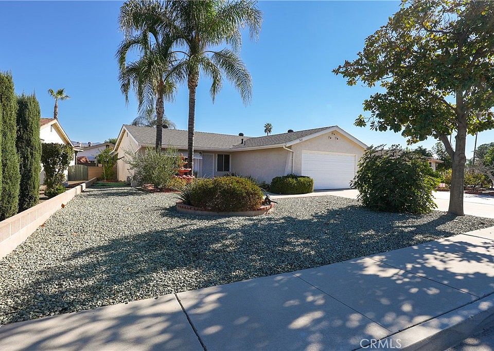 PRICE IMPROVEMENT! READY TO SELL! Welcome Home to this Beautiful 55+ Single Story Home! Located at 2416 El Rancho Cir Hemet, Ca. This Lovely well maintained 2 /3 Bedroom 2 Bath home is located in a well established and desirable neighborhood with great community amenities. The residence also offers an Office/Flex room for additional living square footage or a potential 3rd Bedroom. As you walk into the front door into the Family room you will feel right at home as the space opens to the Dining room and into the kitchen. The kitchen is tastefully upgraded with stainless steel appliances, granite counter tops and espresso modern cabinetry. Perfect for the home chef and also to entertain guest. Down the hall you will find a spacious Office/Flex room where the options are endless. Adjacent you will find a Full bath with Shower, Tub combo excellent for guest. You will then turn into the Primary Ensuite where you can enjoy the convince of the bathroom for added privacy. Across you will find the second bedroom. Did I mention you will also save on your monthly electric bill with a Quiet Cool whole house attic fan, to help keep your home cool, additionally both Bedrooms come equipped with ceiling fans. You can enjoy having your morning coffee or having your dinner al fresco under the Outdoors patio you can also choose to sit in your very own sun room where you can enjoy watching your indoor garden grow. The Private back yard has beautiful mature Lemon and Fruit trees that produce during season it's the perfect yard to relax in. You can also enjoy the easy accessibility of a two car garage that comes equipped with two remote controllers. A Newer Roof was added, along with Water Heater & Quite Cool Whole House Fan . You will also enjoy the mature lemon, orange, apricot, guava, and lime trees. Did I also mention that the home is in close proximity and conveniently located to Grocery stores, Shopping, Soboba Casino, Diamond Valley Lake and much more. It won't last long contact me today for a showing!