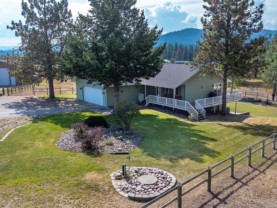 Nestled in a peaceful setting with views of Whitefish Mountain Resort and Glacier National Park, this meticulously maintained property offers the perfect blend of privacy and convenience. This property sits on 1.6 fully fenced acres featuring main level primary bed and bath. The sun-filled living area boasts large windows that frame the wooded landscape. The walkout basement includes ample storage and a wet bar. Step outside to enjoy the peaceful backyard, complete with a firepit, a small rock garden pond, and frequent visits from deer and pheasants. The property offers an oversized 2 car garage. The 32x54 insulated and heated shop provides excellent workspace and storage. The property also includes a private recreational path at the end of the driveway, connecting Rhodes Draw to West Valley School. Just minutes from town, yet offering a true country feel, this property is a must-see for those seeking tranquility, space, and natural beauty. Option to purchase furnished.