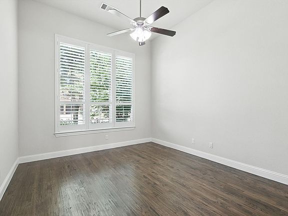 Welcome to this beautiful north facing home nestled in a quiet and highly desirable Plano neighborhood! As you step inside, you'll be greeted by a soaring ceiling at the grand entryway, flanked by a private home office and an elegant formal dining room perfect for hosting guests. The home features an open-concept floor plan with hand-scraped hardwood floors, plantation shutters throughout, and abundant natural light. The spacious living room boasts a floor-to-ceiling stone fireplace that serves as a stunning focal point and adds warmth and character. The gourmet kitchen is a chef's dream with 3cm granite countertops, stainless steel appliances, gas cooktop with exterior-vented hood, three pendant lights over the island, and extensive cabinetry offering ample storage. The primary suite is conveniently located downstairs and features hardwood floor, a spa-like bath, oversized shower and a large walk-in closet. Upstairs offers a generously sized game room with hardwood floor, three additional bedrooms, two full bathrooms, and a dedicated media room pre-wired for surround sound ideal for movie nights at home. Located just minutes from Hwy 75, Costco, parks, restaurants, hospitals, and more, this home offers both convenience and comfort. Don't miss this opportunity schedule your private showing today!