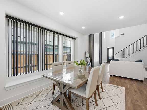 Step inside to an inviting open-concept floor plan featuring soaring ceilings, abundant natural light, and elegant finishes throughout. The gourmet kitchen is the heart of the home, complete with stainless steel appliances, a large center island, quartz countertops, and ample cabinetry—perfect for everyday living and entertaining. The spacious living area flows seamlessly to the dining space, creating an ideal layout for hosting family and friends.