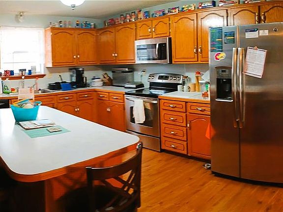 Really lovely home for the price. Entry, kitchen/dining and halls have wood floors. Living room is spacious with lots of natural light. Kitchen has stainless steel appliances and a large island with storage. Kitchen and dining are open with the dining having a patio door to the deck. Deck and front have had the rails replaced and are in great shape. The backyard is large leading to a back alley. This will allow for alley access to a detached building if you'd like to add one. The main level has two guest bedrooms and full bath and a HUGE master suite. The vaulted ceiling stretches across most of the master ceiling and the master bath is stunning. It has a walk-in shower and the master bath has been completely remodeled. There is an attic fan for those cooler days of summer. The lower level has a big family room with a wood burning fireplace and shelving below the windows. There is a separate storage room in the lower level and another bedroom and full bath. Call today to schedule a showing on this beautiful home in a wonderful neighborhood close to Leavenworth High School and shopping.