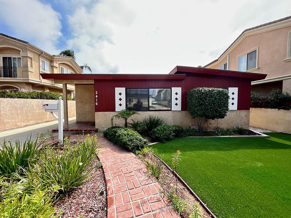 Rare single-family residence in a wonderful North Redondo neighborhood. Gorgeous home includes vinyl plank flooring throughout, fresh paint, custom kitchen with stainless hood and stone counter tops, 2 bedrooms and one bath toward the front of the house, master bedroom and bath at rear, large sliding glass doors off rear family room, spacious front living room, central heating and air conditioning, laundry room in the house, detached oversized 2-car garage with workspace, synthetic grass at front yard, private and landscaped rear yard, quiet street and more. Must see! Enjoy all that the South Bay area offers with award winning schools, beaches, parks, shopping, and restaurants. No smoking. Tenant pays all utilities.
