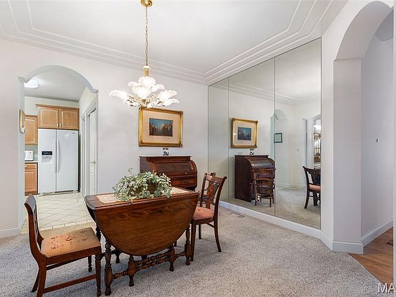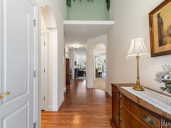 Incredible Executive Style Villa in Bear Creek Backing to the 9th Hole of Bear Creek Golf Club. Walking into this Villa you will be wowed by the incredible Vaulted ceilings and trim work. The entry way opens up to a beautiful atrium great room with fireplace and golf course views. Your kitchen is stunning with custom high end cabinetry, granite counter tops and breakfast bar. The kitchen flows to a spacious breakfast room with stunning carousel ceiling and access to your deck and expansive patio. The main level also features 2 bedrooms and Large mud room. The primary Suite offers coffered ceilings, walk in closet, bay window, double sinks, and sep tub.shower. The lower level offers a large family room with fireplace, office, 3rd Bedroom, 3rd full bath and man cave//safe room. The HOA is only $250 a month and that covers your roof, exterior maintenance, grass cutting, and snow removal. Your annual fee to Bear Creek of $350 covers your pool access! This home is just seconds from Wentzville Pkwy and I-70!