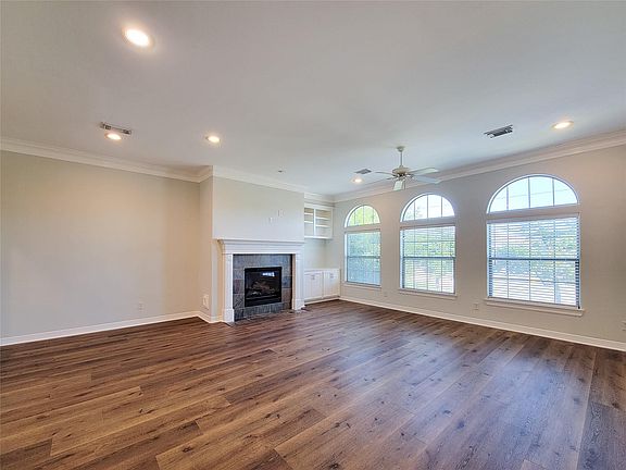 Spacious 3 bedroom, 3 1/2 bath end unit townhome totally refreshened. Nice open living space with tons of natural light, fireplace, builtins, balcony and pass through breakfast bar to kitchen. Fresh paint, new flooring and stainless appliances 2025! Fenced, gated front entrance with greenspace. All appliances included. Great floor plan with 1 bedroom and bath down, and 2 bedrooms (including primary on the 3rd floor). Each bedroom has it's own ensuite bathroom, with powder room for guests on the second floor. Tons of storage and walk in closets. All of this plus close proximity to all downtown popular attactions including Discovery Green, Minute Maid Park and Toyota Center, and U of H!