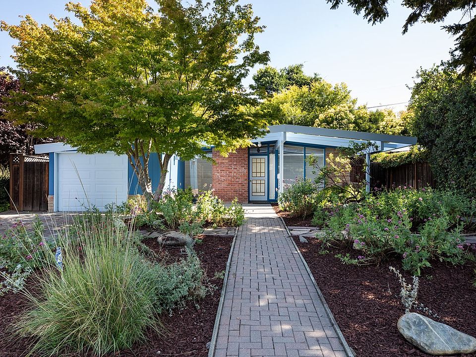 neighborhood. The kitchen is a highlight, equipped with modern amenities including a gas cooktop, dishwasher, island, microwave, pantry, refrigerator, and garden window, perfect for cooking enthusiasts. Separate dining area has lots of built in storage with additional counter space. Living room with high ceiling and fireplace opens to attached sunroom which could be used as a home office, or family room. Brand new A/C/Heat in the open plan living area. Updated baths with tile flooring. Private patio leads to large back garden with fruit trees and storage shed. Home features a combination of hardwood and tile flooring, adding elegance and durability throughout. This beautiful home is located close to Monta Loma Park and school, with easy access to nearby Central Expressway. Close to Caltrain station and San Antonio Center with shopping, restaurants and Alamo Drafthouse movie theatre! Gardener included. Schools: Monta Loma Elementary, Crittenden Middle, Los Altos High School. (Tenant to verify schools). Dogs submit breed/size, no cats please. One year lease minimum.