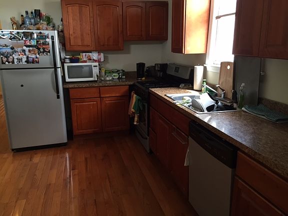 High ceiling, hardwood floor, cherry cabinets, eat in kitchen, dishwasher, central ac and heat, easy no permit parking, nice yard.