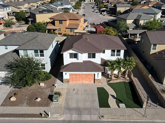 Welcome to 2416 Playa Point, a well-designed 4 bedroom, 3 bath home offering an additional flex room and an upstairs loft, giving you options for office space, entertainment, or extra living needs. With approximately 1,996 sq. ft., the open concept layout blends the living room, dining area, and kitchen, creating a functional space for everyday living. The kitchen includes quartz countertops, stainless steel appliances, and a mini beverage cooler. Tile flooring extends throughout the main living areas for easy maintenance. The spacious primary suite features a walk-in closet, double sinks, a soaking tub, and a large step-in shower. A built-in bar is located in the garage, adding a unique touch for entertaining. The home is positioned directly across from a park, with convenient school bus pick-up nearby. Refrigerated air provides comfort during warm months. This property offers a practical layout, thoughtful upgrades, and a great location, making it a strong choice to consider.