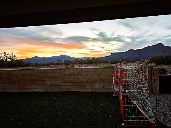 Welcome to this spacious 4-bedroom, 2-bath home located in the prestigious Sedona Ridge Golf Course Subdivision—where every day begins and ends with breathtaking mountain views. Thoughtfully designed, the home's windows are strategically placed to capture the stunning scenery. Inside, you'll find beautiful tile flooring, granite countertops, and stainless steel appliances. A see-through fireplace creates a cozy ambiance between the living room and dinning area, perfect for entertaining. The split-bedroom floor plan offers privacy, while the primary suite features a luxurious spa tub, walk-in shower, and generously sized walk-in closet. Enjoy outdoor living with two patios—one off the primary suite, and another complete with a wood-burning fireplace for cool desert evenings. Additional highlights include: On-demand water heater Natural wood flooring in the office Large 3-car garage Large area and easy-access for RV parking from 2 sides. Tesla Charger 10x10 shed with loft area for lots of storage This home truly blends comfort, elegance, and function—all in a stunning golf course area.