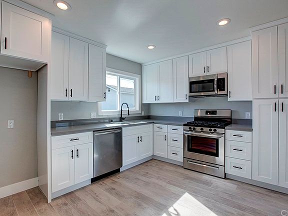 Highly upgraded and professionally designed modern single level two bedroom home. This home has just gone through a complete remodel. Upgraded flooring, upgraded baseboards, new dual pane windows and recessed lighting throughout the home. The kitchens offers stainless steel appliances, upgraded stone counter tops, view of the backyard and brand new custom cabinets. The living room features a large picture window. Ample natural light flows through out the home. Drought tolerant and low maintenance front yard. The large backyard offers a shed and a blank slate for landscaping. This house is a must see. Don't miss the attached garage and check out the virtual tour.