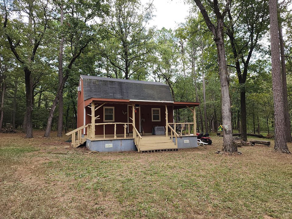Location: This property is nestled in the heart of the Ouachita National Forest in a beautiful valley setting between the Winding Stair Mountain Range to the South and Blue Mountain to the North. The North property line is roughly 150 feet from the 1.5 million acre Ouachita National Forest, which provides hunting opportunities for whitetail deer, eastern wild turkey, black bear, wild hog and other small game as well as direct access to an impressive network of ATV, hiking and horseback riding trails that are operated and maintained by the US Forest Service. This property is located roughly ¾ mile from the well-known Cedar Lake Recreational Area, which is where the last two Oklahoma state record largemouth bass were caught and a central hub for miles of equestrian trails. Near-by towns include Heavener, Talihina, Big Cedar, Broken Bow and Hochatown. This property is about a 4 hour drive from Dallas, Texas. Services to Property: Rural electricity, rural water, septic system, telephone land line and 150 gallon propane storage tank. There is a drilled water well in front of the cabin that is currently not being used. Access to Property: The property is accessed by a county-maintained road. Land: The cabin sits on 1.38 acres of land according to the LeFlore County Assessors records. The land is level to gently sloping land with well drained soils and is covered with a mature stand of timber that is native to south-eastern Oklahoma being primarily a diverse variety of oaks. The area surrounding the cabin is very shaded and a park like setting. Wildlife are frequently seen on the property as well as the adjoining National Forest Area. The Cedar Lake Recreational Area is just ¾ mile North of the cabin and is a popular starting point for the Winding Stair Mountain Equestrian Trails, a system of over 70 miles of marked horseback riding trails. Cabin: There is a cabin on the property that was constructed in 2012 according to the LeFlore County Assessors records. The cabin is 2 story with 768 Ft2 of heated and cooled living area and 1 Bed/1.5 Bath. The cabin has a 10 foot x 24 foot covered front porch with rustic cedar posts and hand railing. The cabin has two window AC units for cooling and propane heating. All of the kitchen appliances are included in the sale and most of the personal property contained inside the cabin. 5th Wheel Camper Included: There is a 2015 Forest River Wildcat 295RSX camper that is included in the sales price. The camper can be used as a place for guests to stay. There are two 50 Amp RV electrical connections below the electric meter. Fishing Boat: There is a 14 foot Jon Boat, trolling motor and 1 year old battery that is perfect for fishing in Cedar Lake that is included in the sales price. Agents Comments: This One of a Kind property is an outdoorsmans paradise and, in my opinion, this property can be classified as true Investment Grade Recreational Property. It is the ideal setting for a relaxing and peaceful weekend getaway from city life or even a full time residence. This is a very unique recreational property that provides direct access to the 1.5 million acre Ouachita National Forest with hunting, horseback riding, hiking, ATV riding, camping and fishing. The cabin could easily be rented out on a part time basis for a secondary source of income if desired. Price: $164,900 (includes 5th Wheel Trailer)