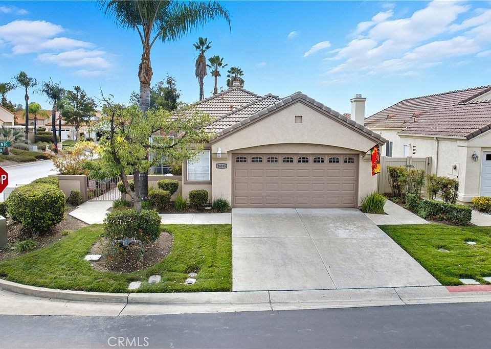 Welcome to 24165 Corte Valente, a beautifully maintained 2 bedroom, 2 full bath, single-story home in Murrieta’s desirable Colony community with an office area that can also serve as a 3rd bedroom. This residence blends open-concept living, thoughtful upgrades, and serene outdoor spaces to create an inviting atmosphere perfect for comfort and entertaining. From the moment you enter, you’re greeted by an open and airy floorplan with vaulted ceilings that enhance the sense of space and natural light. The seamless flow between the living room, dining area, and kitchen encourages both relaxation and connection, making it ideal for gatherings or quiet evenings at home. The tile flooring throughout the main living areas adds durability and elegance, while laminate wood-style floors and plush carpet in select spaces provide warmth and comfort. The upgraded kitchen is the heart of the home, featuring granite countertops, a center island, stainless steel appliances and rich oak cabinetry that offers both style and functionality. Whether preparing meals or entertaining guests, the layout provides ample counter space and easy access to the dining and living areas, maintaining an effortless flow throughout.
