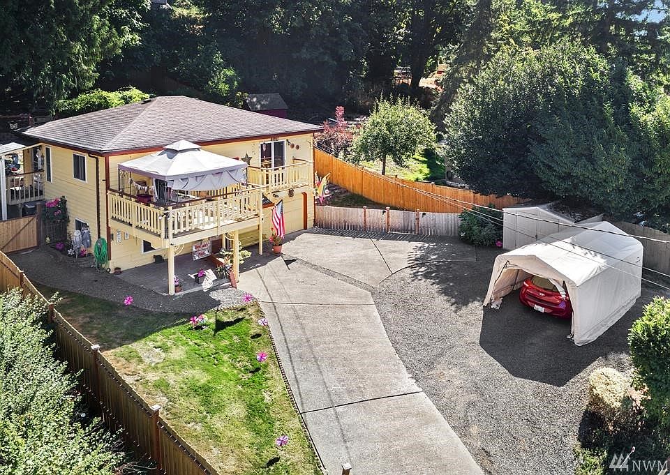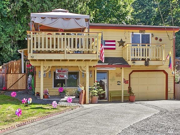 Enjoy this unique home close to the north shores of Lake Stevens. This 2 story home enters to a generous main floor bedroom and full bath. The upper level features an open kitchen with beautiful hickory cabinetry, stainless steel appliances and extends into a cozy living room and large outdoor balcony. The master bedroom has ample closet space and its own private balcony. The yard is fully fenced, including a spacious patio making entertaining easy, and additional fenced garden areas. Must See!