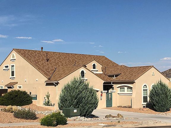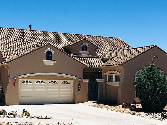 Previous model. Pure luxury and exquisite design with attention to detail. Soaring ceilings. Open floor plan. Plaster designed ceilings & walls. In-law apartment with separate entrance. Finished garage for studio, workshop, home school, additional living space. New metal barrel tile roof (50 year warranty), garage door, synthetic stucco = 2020. Wolf, Subzero & Asko, appliances. Continuos hot water. Whole house water softener. Dual HVAC with UV sterilizer AC = 2021. Whole house surround sound. View for miles from the upstairs office. Views of Balloon Fiesta from front yard & watch sunrise from the backyard. Private courtyard with fountain. Epoxy patio, garage, hot tub floors. Professionally xeriscape landscape includes vegetable garden & orchard. Indoor & outdoor pools & gym at the community club house.